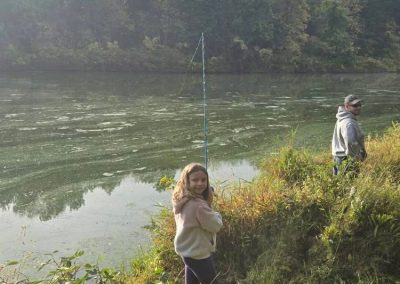 A student with fingerling