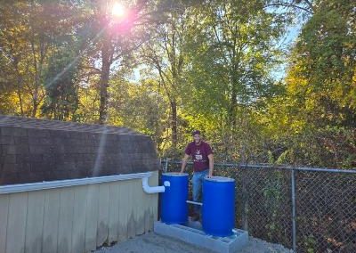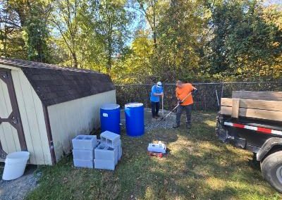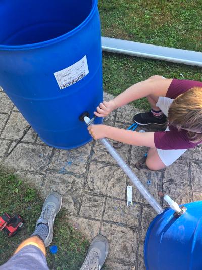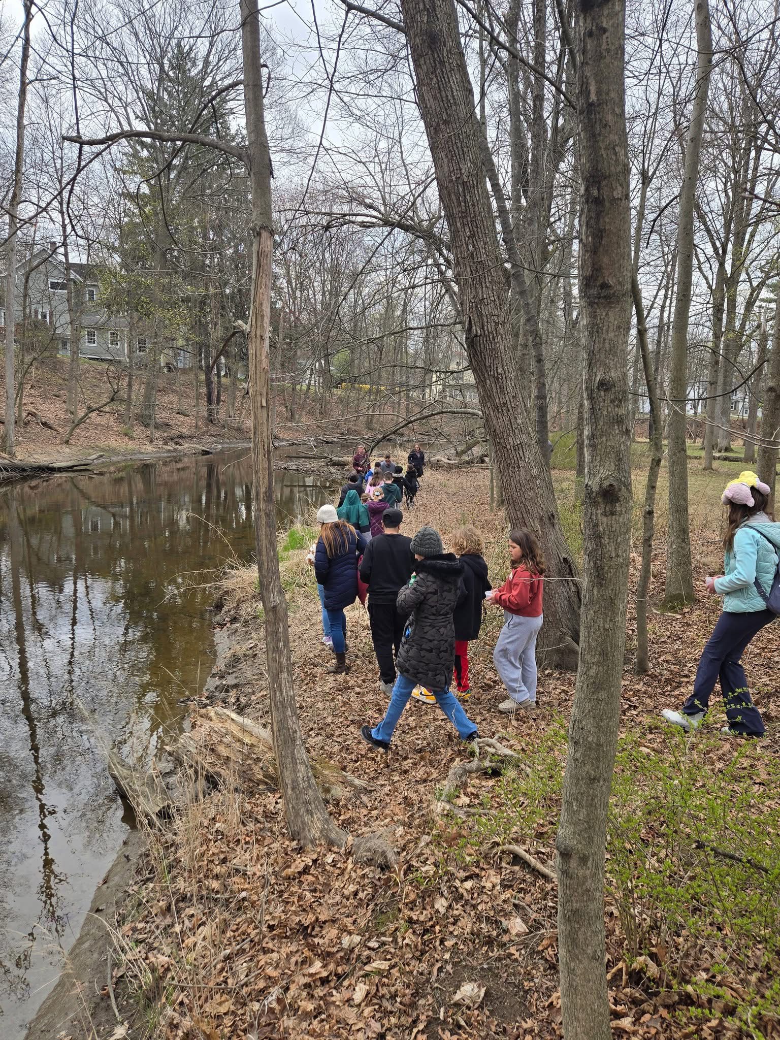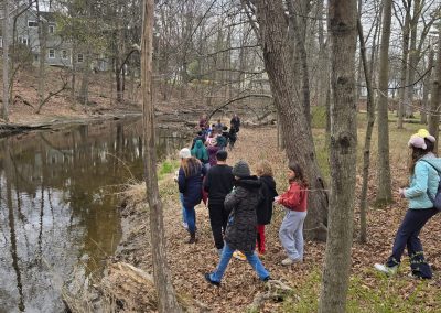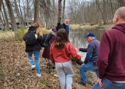 Principal Gregory Heidemann and students stocking the Tin Brook