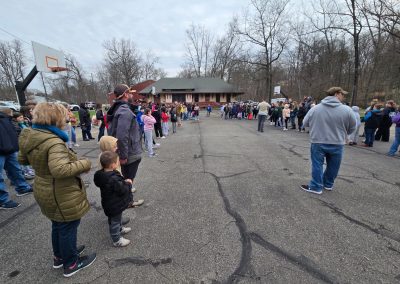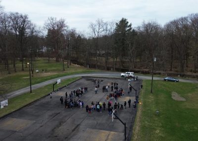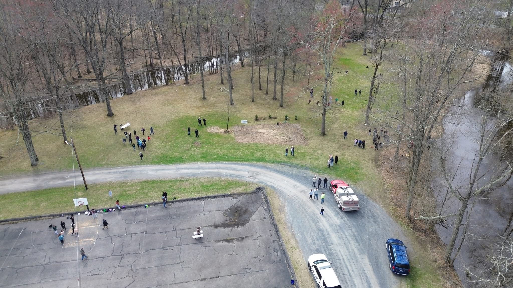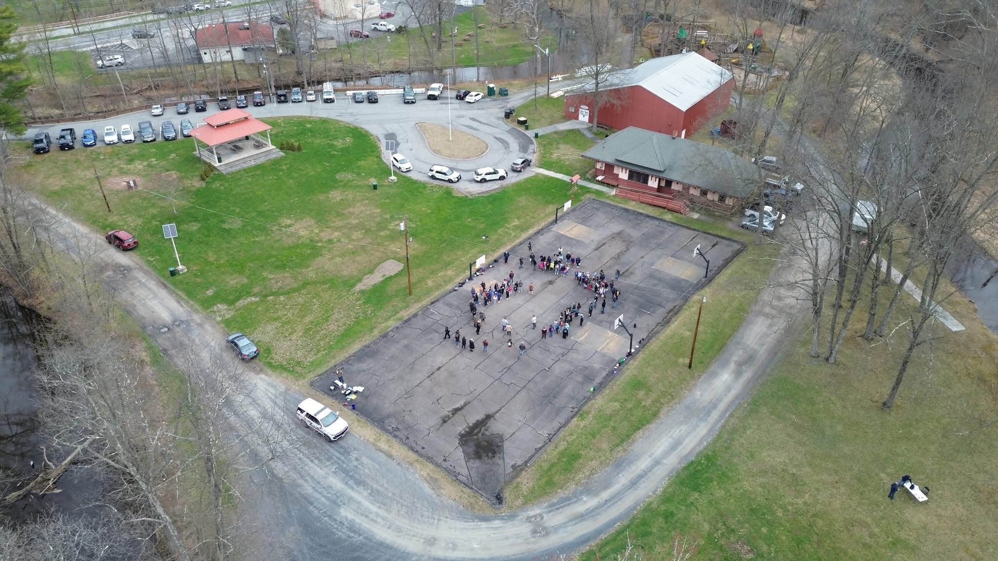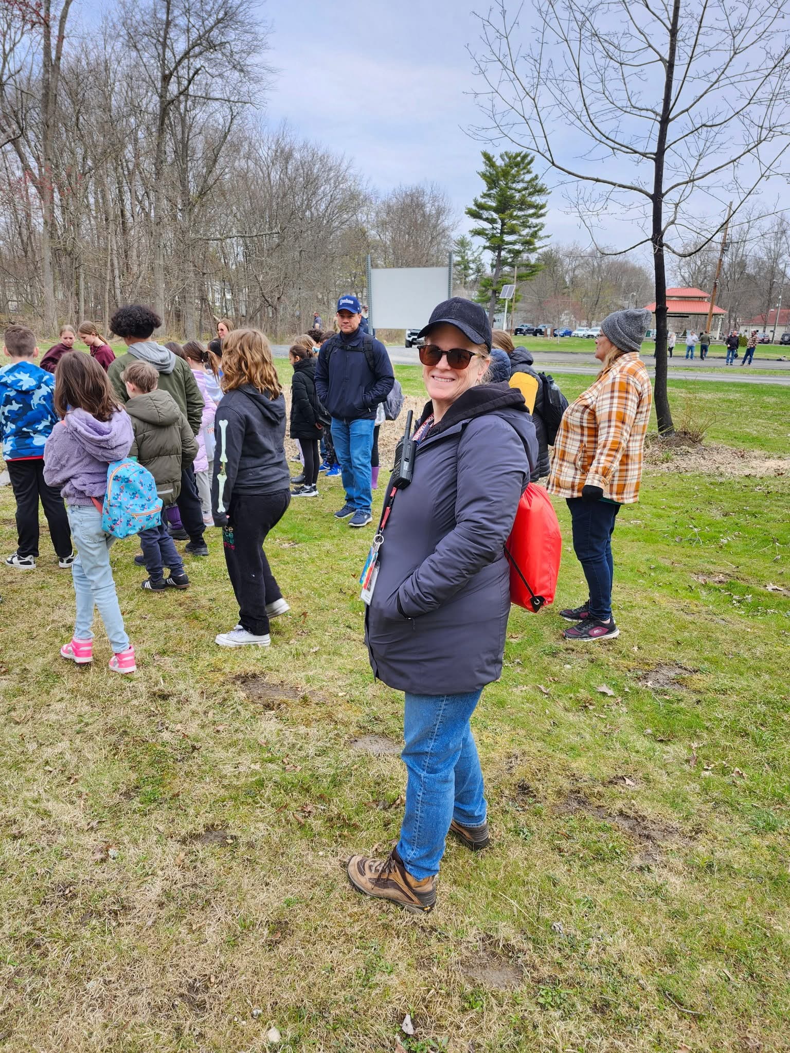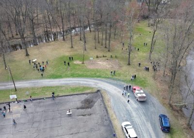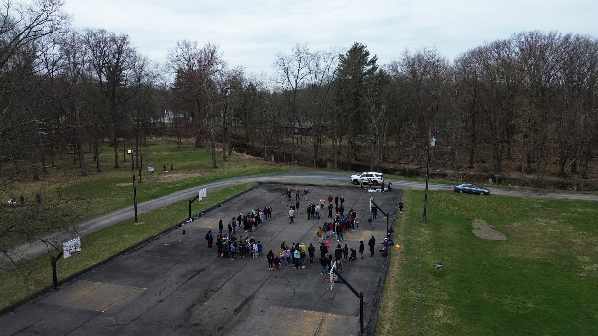 Field trip aerial of Walden Elementary School students