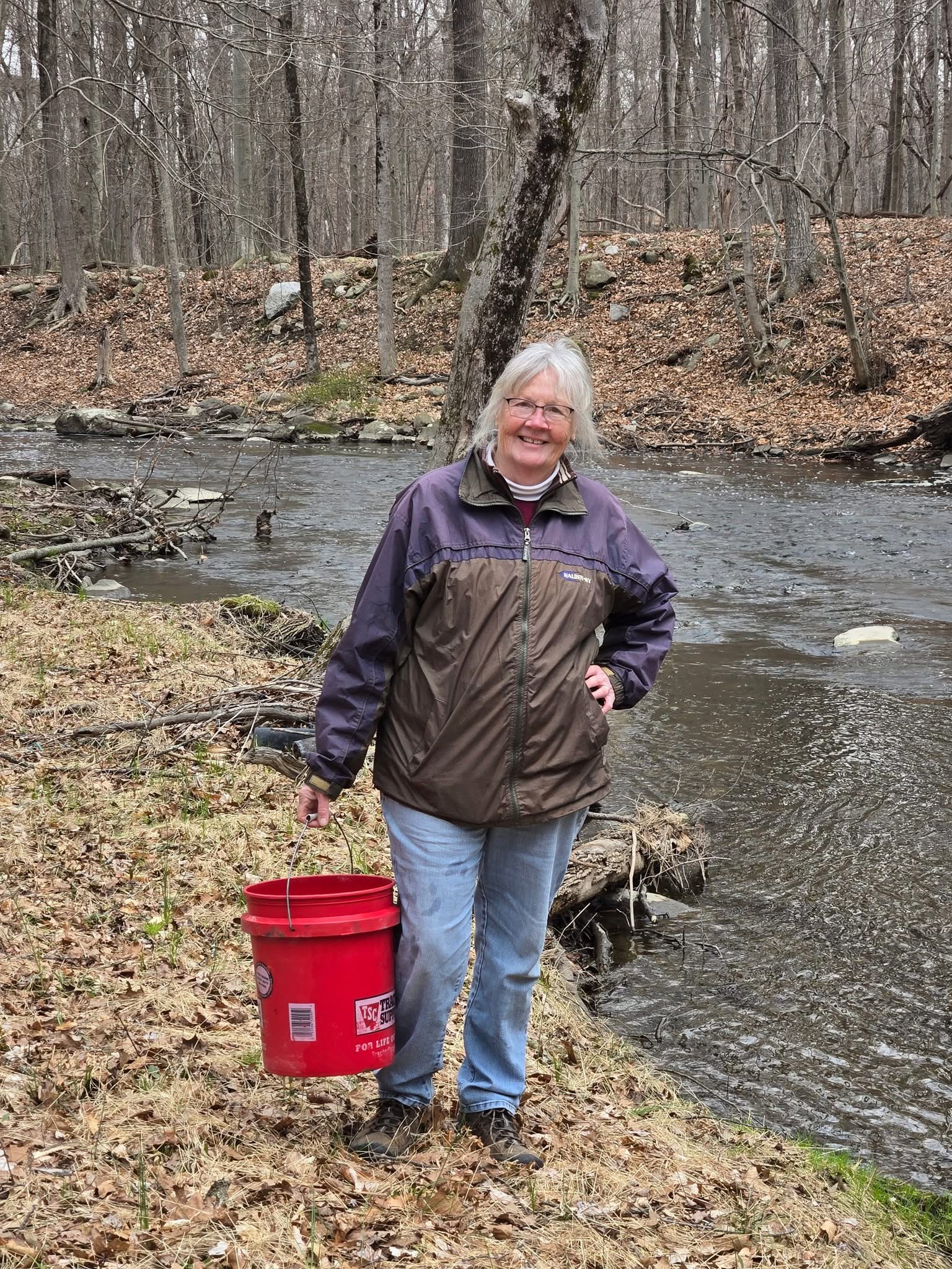 Wenda Heaney with a bucket full of trout