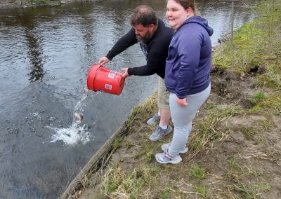 Josh DeZemo and younger cousin stocking Tin Brook